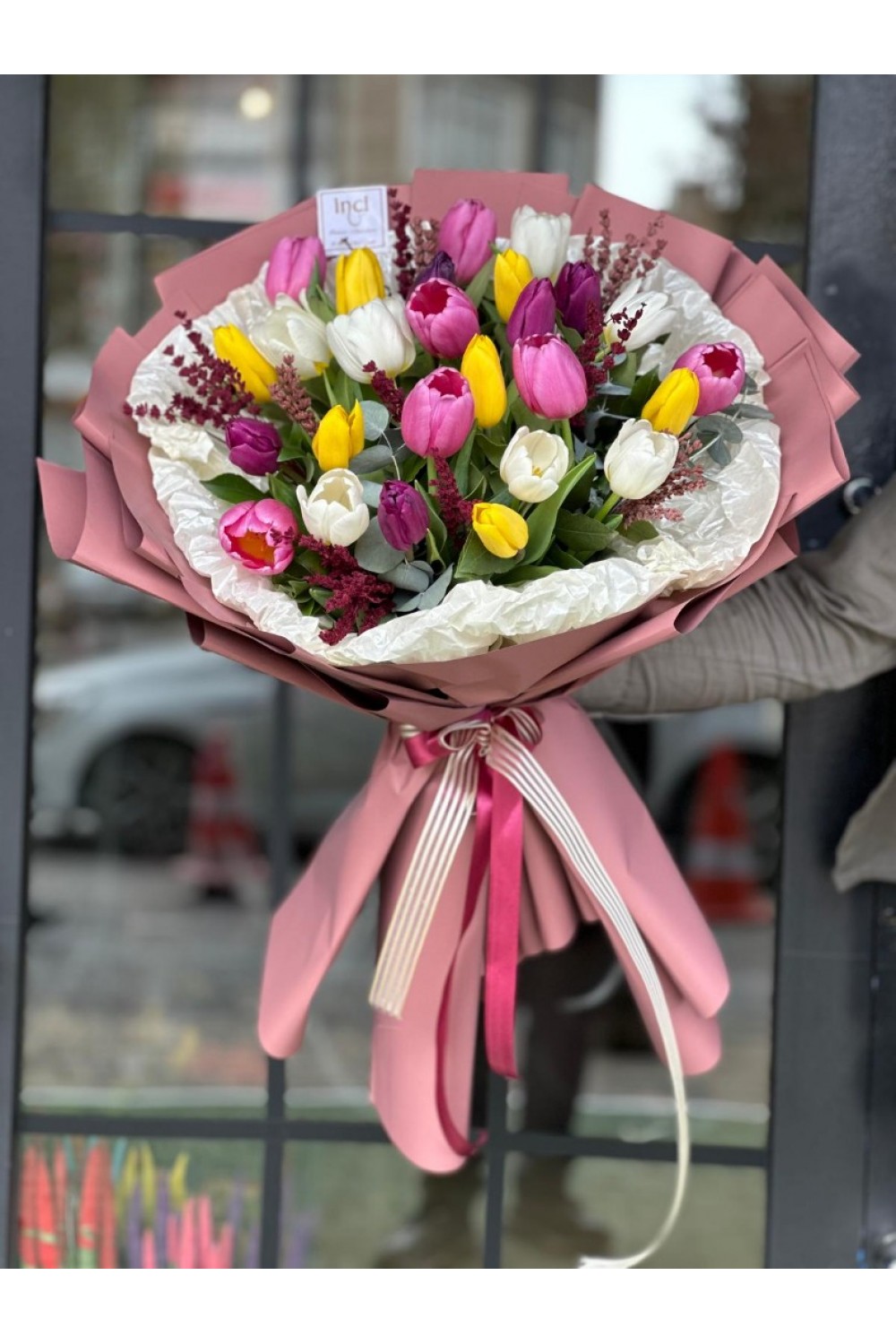 Önemli Not: Çiçekler doğal ürünler olduğu için mevsimsel şartlara bağlı olarak renk tonlarında veya yan ürünlerde (kurdela, ambalaj vb) farklılıklar görülebilir.