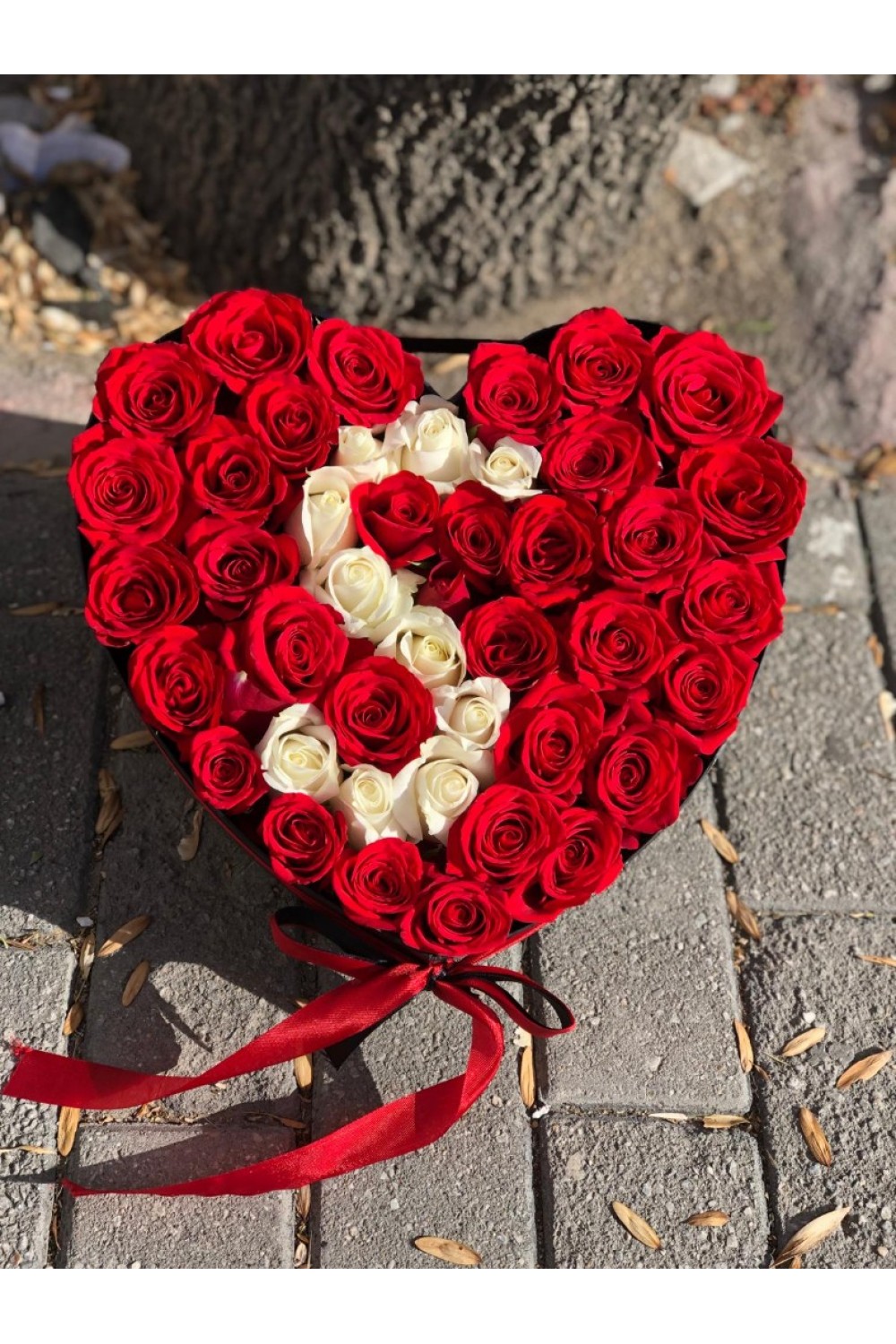 Kalp Şeklinde Kırmızı Gül Kutusu