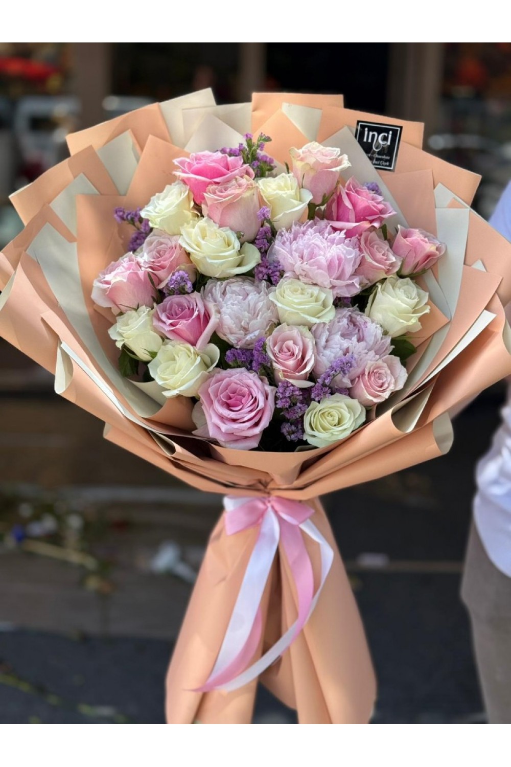 Önemli Not: Çiçekler doğal ürünler olduğu için mevsimsel şartlara bağlı olarak renk tonlarında veya yan ürünlerde (kurdela, ambalaj vb) farklılıklar görülebilir.