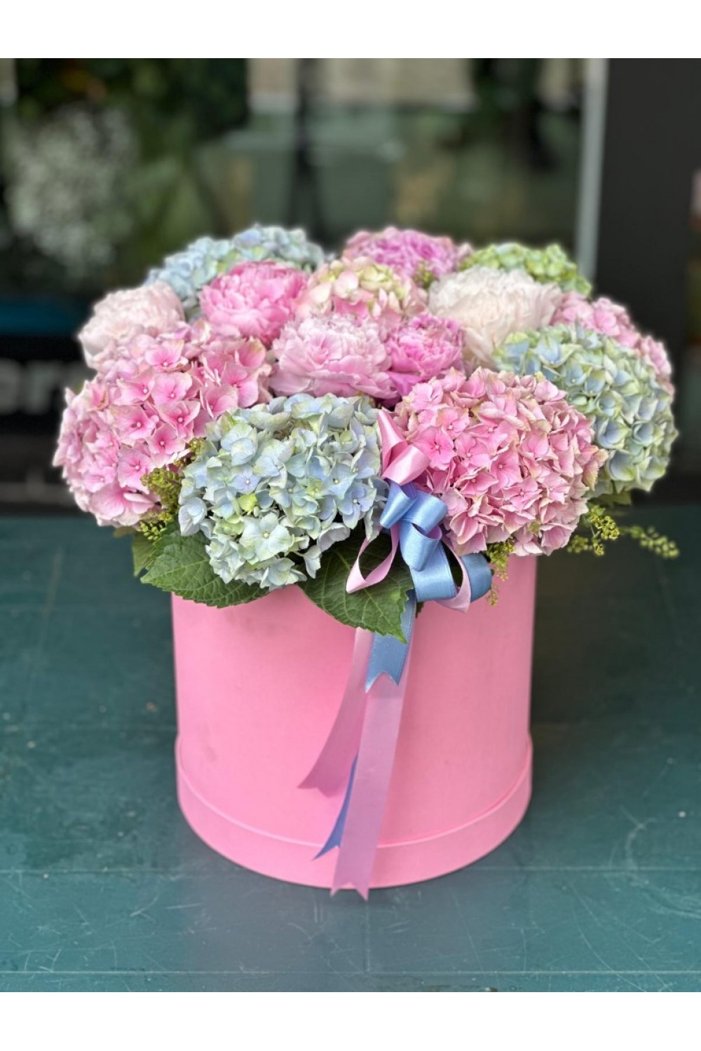 Pembe Kutuda Pembe ve Mavi Karışık Buket