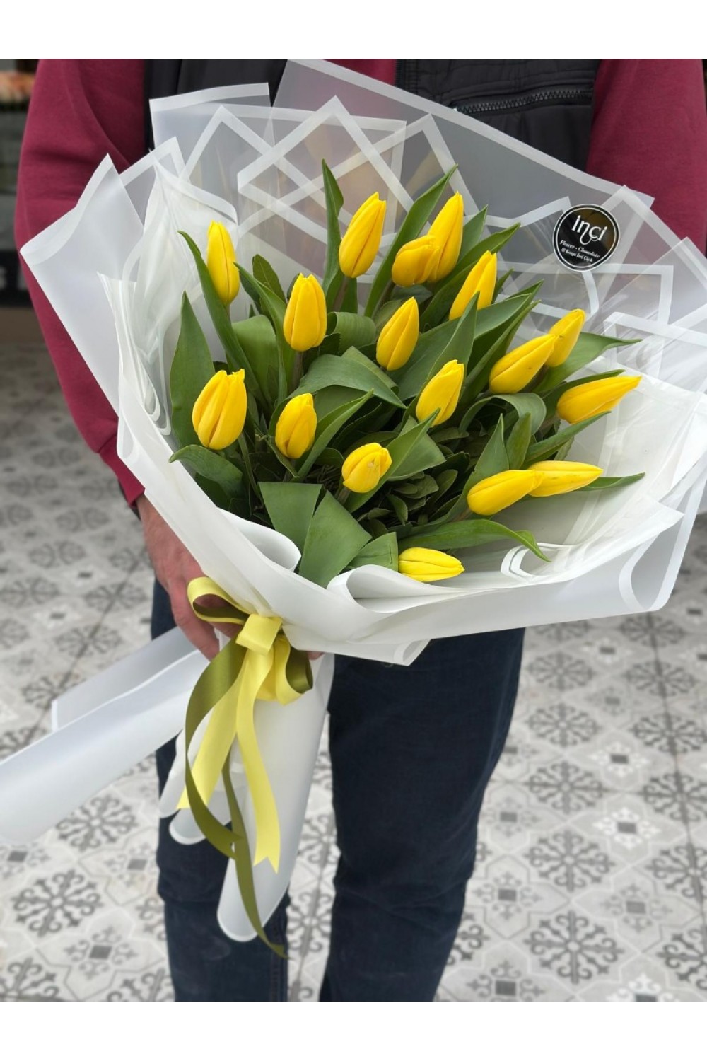 Şeffaf Ambalajlı Sarı Lale Buketi