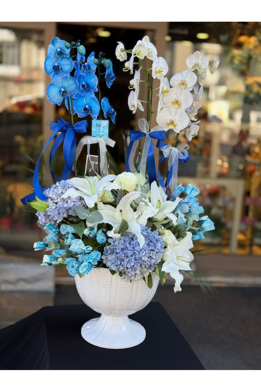 - Mavi&Beyaz Orkide Aranjmanı