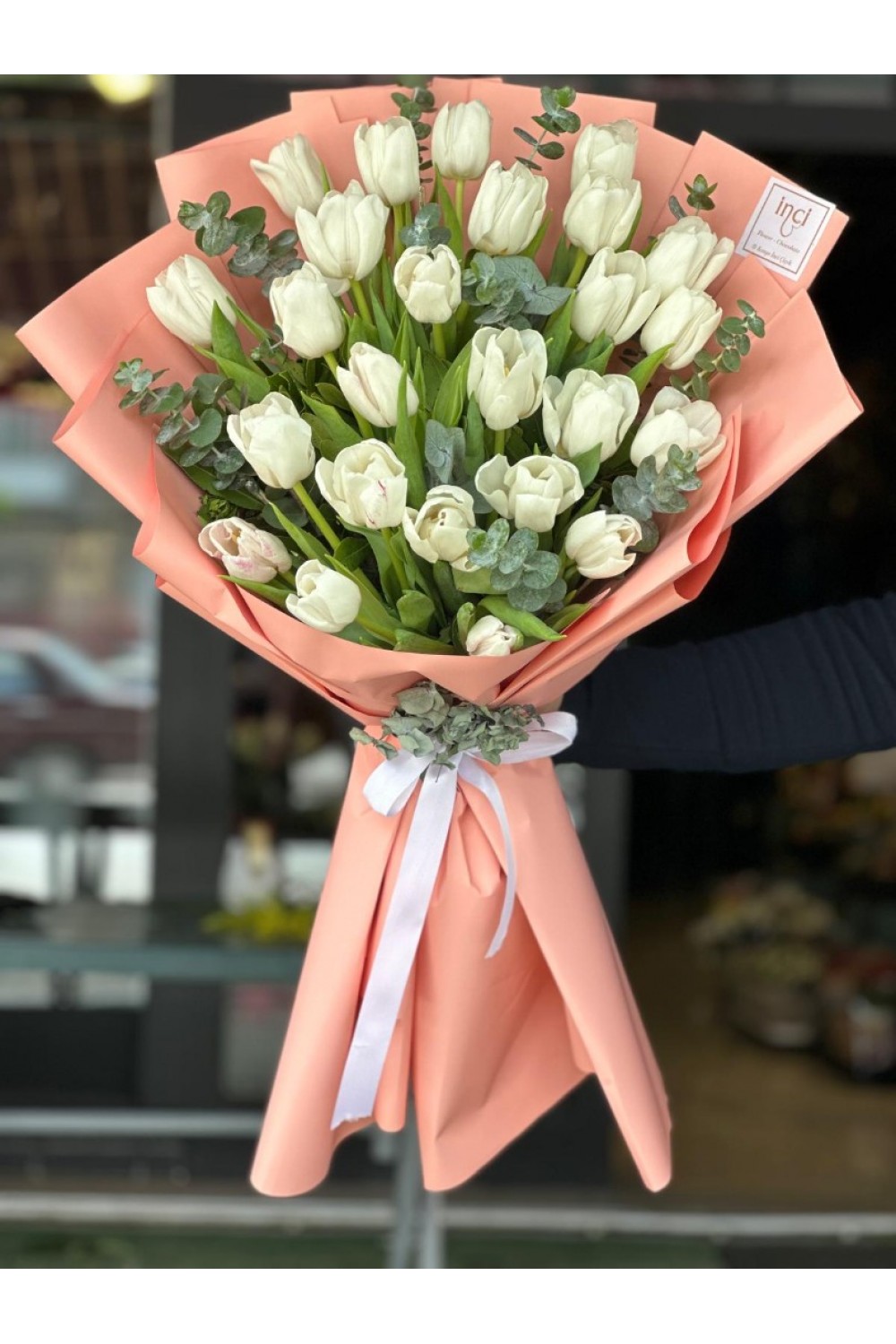 Somon Ambalajlı Beyaz Lale Buketi