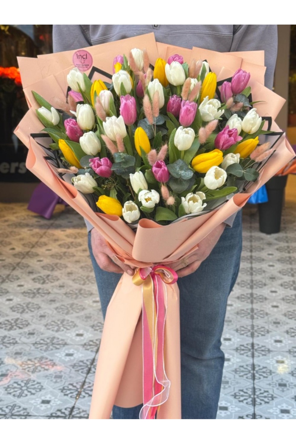 Somon Ambalajlı Karışık Lale Buketi