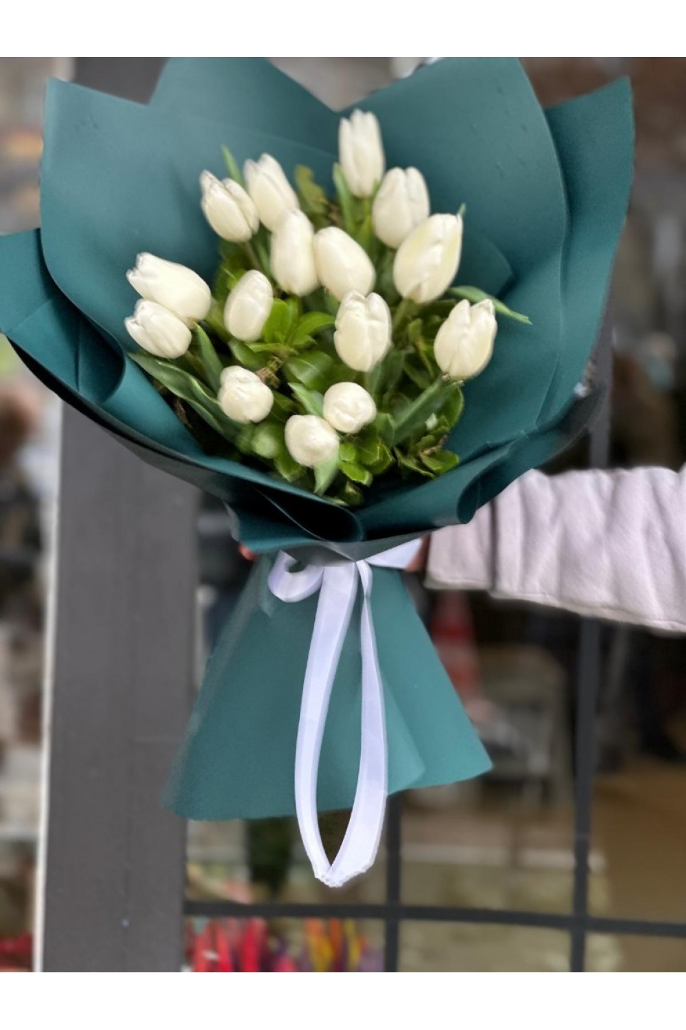 Yeşil Ambalajlı Beyaz Lale Buketi